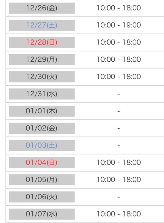 年末~1月7日までの予定出てます🗓