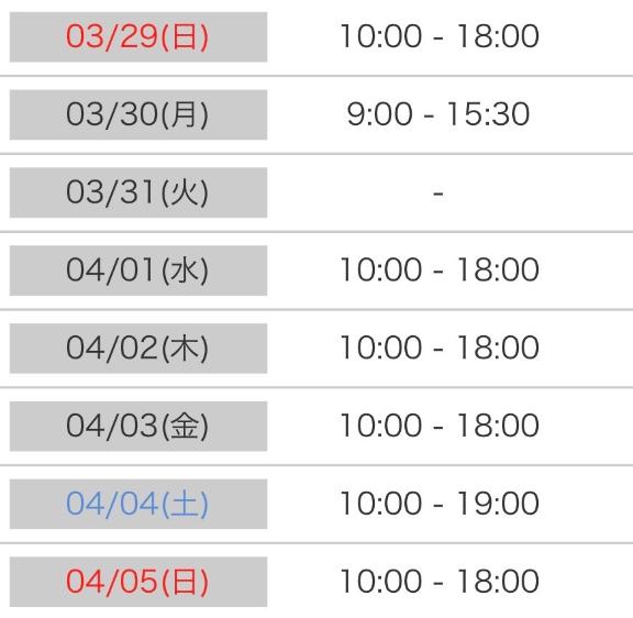 1日(水)10時~18時