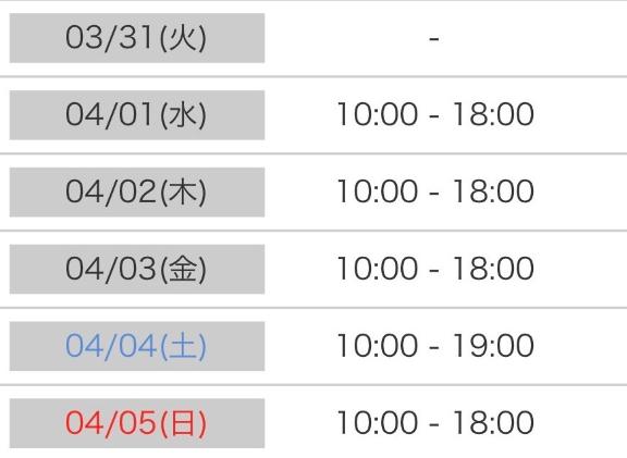 - 04/04(土) 10:00 - 19:00